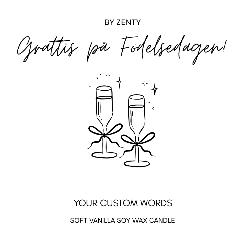 Skapa ett unikt ljus med ditt eget personliga meddelande! Välj bland våra 7 dofter och skriv en hälsning som ska stå på etiketten – namn, kort hälsning eller något speciellt.